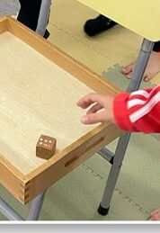 サイコロを回して出た目の数だけ机の周りを走って次の人にタッチする競技です