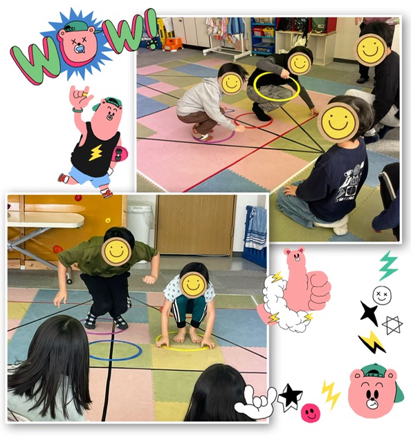 昨日は『輪っかジャンプリレー』をしました(^^♪