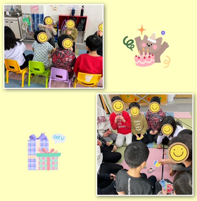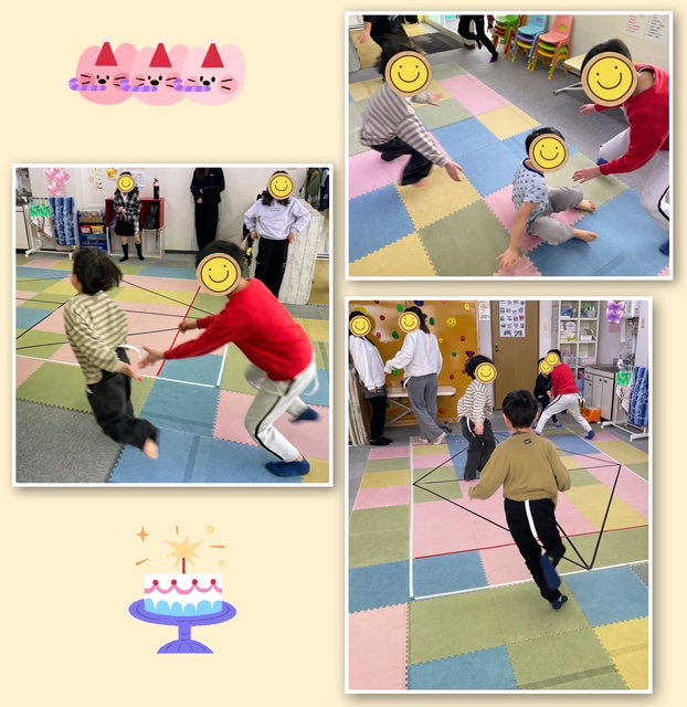 みんなで「おめでとう」とお祝いをした後は、2月生まれのお友だちのリクエストで【ウノ】と【しっぽ取りゲーム】をしましたよ(#^^#)